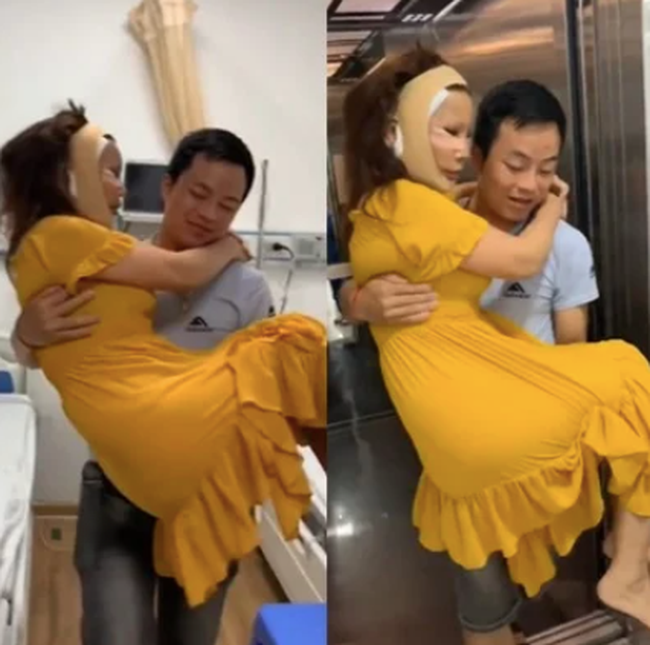 Mới đây, cô dâu Cao Bằng lại livestream cập nhật tình hình sức khỏe sau cuộc đại phẫu căng da mặt. Mặc dù da mặt đã căng bóng, song mặt vẫn sưng phù, thậm chí phần miệng còn bị méo xệch về một bên dẫn đến việc nói chuyện hay ăn uống khá khó khăn.