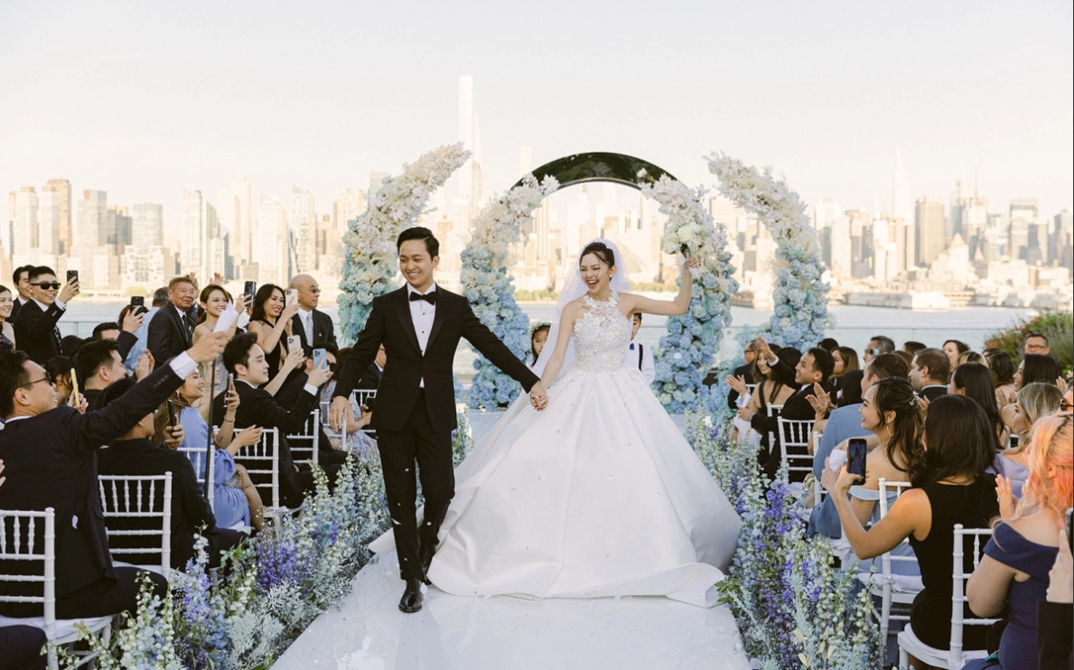 Hôn lễ tổ chức tại New York của vợ chồng Nhi ngập tràn hoa cẩm tú cầu màu xanh, màu mà chú rể yêu thích. Địa điểm tổ chức trên sân thượng của một khách sạn, từ đây có thể nhìn thấy toàn cảnh New York, nơi Sam sinh ra, lớn lên và sẽ sống với Nhi trong những ngày sắp tới.