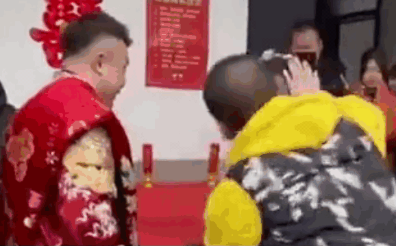 Cụ thể, một người đàn ông đang dùng tay ấn đầu cô dâu và chú rể để làm lễ giao bái. Ngay khi cặp đôi vừa hành lễ xong, người này bất ngờ lao tới ôm chầm lấy cô dâu rồi cưỡng hôn.