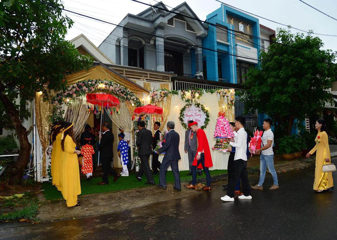 "Mời các bác chiêm ngưỡng ảnh tiệc cưới của em. Các bác xem mấy tấm ảnh này có giống đám cưới ngày xưa không ạ? Đưa dâu lúc 7h sáng mà chụp cứ như 6h tối đến nơi rồi ấy. Nhà hàng bật đèn trắng đèn vàng sáng trưng mà ổng này chụp vào cứ như mất điện. Nhìn ảnh tiệc cưới của người ta rồi nhìn lại ảnh mình mà buồn não nề.