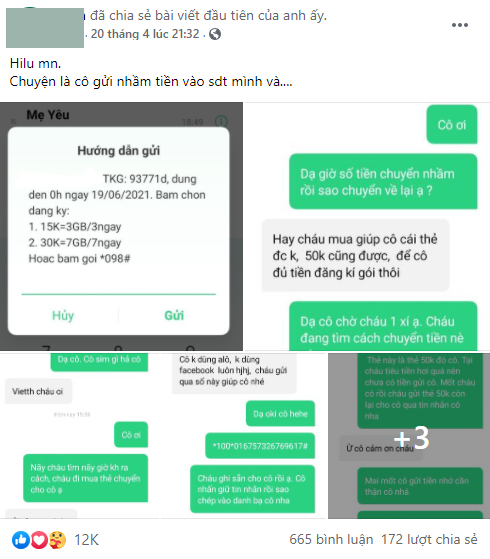 Cụ thể, một cô gái cho biết mình vô tình nhận được một khoản tiền (gần 100 nghìn) chuyển nhầm vào số điện thoại của mình. Sau khi liên lạc với số thuê bao chuyển nhầm, cô gái biết được đây là một cô giáo vùng cao ở Thanh Hóa. Cô không biết sử dụng những loại công cụ kiểu này nên đã xảy ra nhầm lẫn.