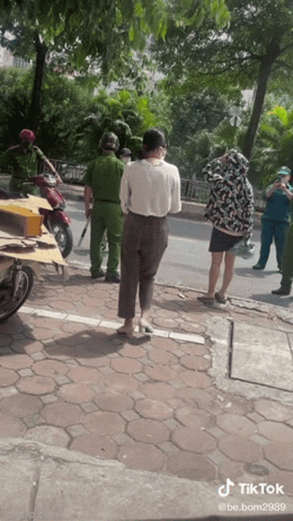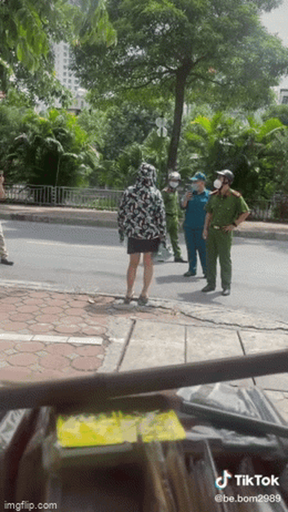Khi công an lấy điện thoại quay hình laị, cô gái cố lẩn tránh ống kính, cáu gắt: "Anh quay vừa thôi anh ơi, cứ quay mãi. Ai mà giơ cái mặt ra cho anh quay mãi".