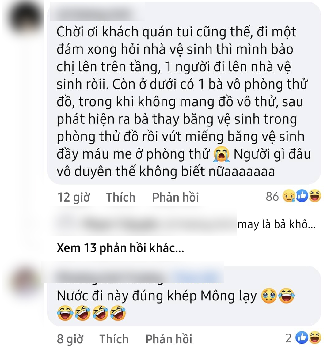 Nguyên văn bài chia sẻ: "Ban đầu bạn nữ mắc quá rồi nên hỏi nhân viên nhà mình có toilet không, nhân viên báo không có thì bạn ấy vẫn lấy đồ thử, không hề tỏ ý gấp gáp. Được 1 lúc lại đấm đấm ngực anh người yêu đi cùng vài phát ra hiệu không thể kìm nổi nữa rồi.