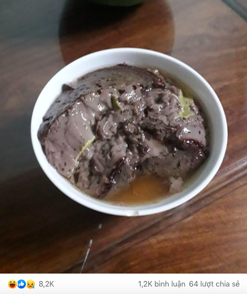 Nếu như cô gái không giới thiệu ngay từ đầu là món bánh flan cacao thì có lẽ nhiều người nhìn ngay thấy đích thị là 1 bát tiết canh luộc chính hiệu.
