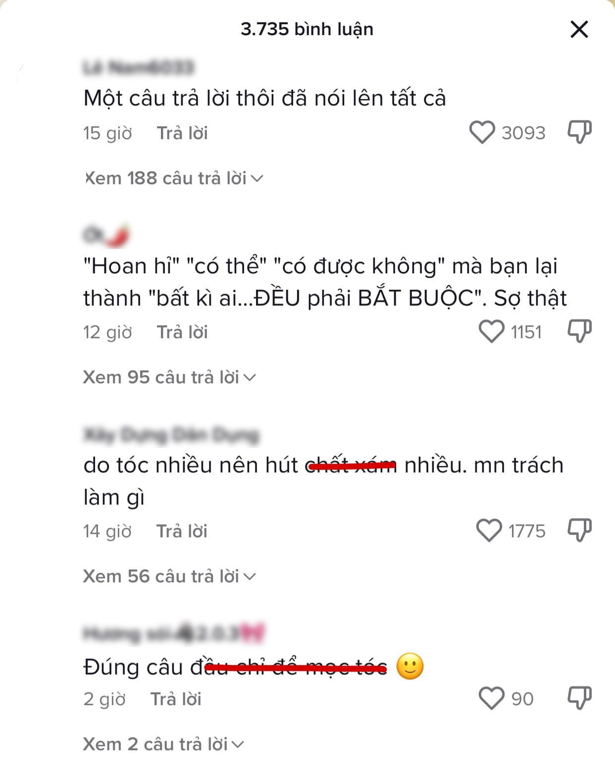 Những tưởng câu chuyện đã dừng lại ở đây nhưng bất ngờ, hàng loạt người chạy vào phản pháo, cho rằng để có 1 bộ tóc như vậy không hề dễ, lời đề nghị kia quả thực khá vô duyên, vô gái tức giận cũng là điều dễ hiểu.