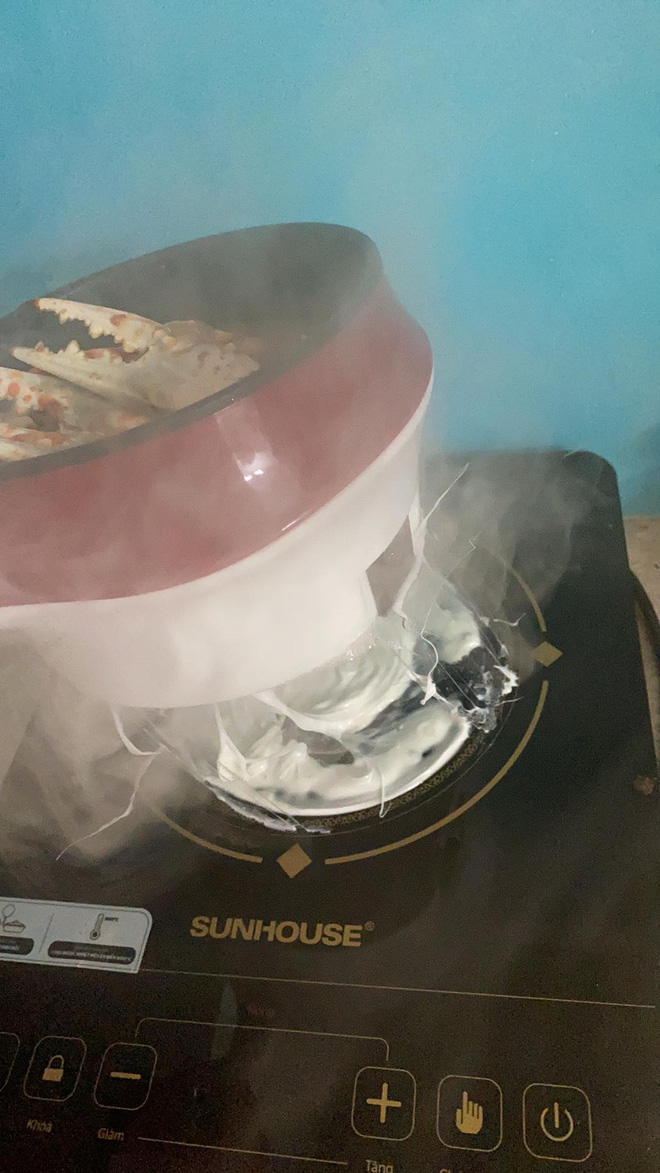 Tất nhiên đó chỉ là suy nghĩ của cô gái, bởi chỉ chưa tới 1 phút, cả gian bếp bỗng bốc khói khét lẹt. Cả nhà hoảng hốt lao xuống thì phát hiện sự cố. Chiếc bếp điện đã bị đun chảy trên bếp từ.