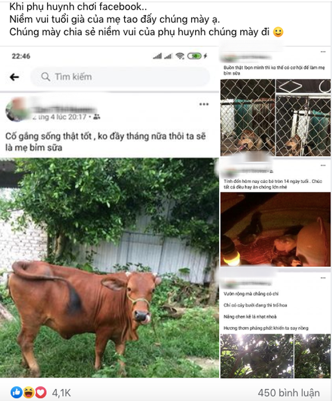 - "Ôi mẹ đáng yêu quá. Y như mẹ mình, từ ngày dùng Facebook cũng suốt ngày đăng ảnh, cái gì cũng đăng từ việc hôm nay ăn gì, nấu món gì rồi hướng dẫn mọi người may vá và nấu ăn nữa cơ".