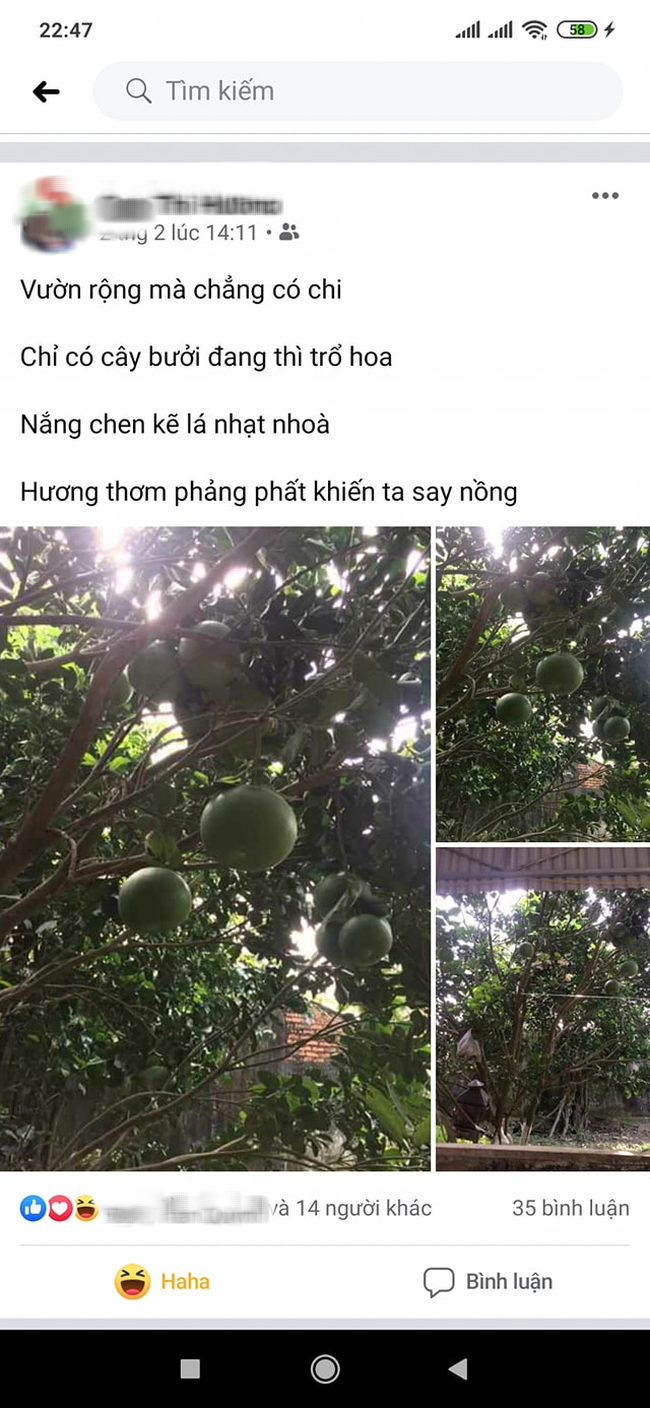 - "Ôi mẹ bạn làm thơ đỉnh cao quá. Còn chị mẹ mình thì suốt ngày xem "Bạn muốn hẹn hò", xong xem livestream bán quần áo, đặt hàng online còn giỏi hơn cả mình luôn. Anh bố thì suốt ngày xem quyền anh, rổi cả clip mấy bọn loi nhoi diễn trò. Nhà có 3 người mà lần nào nấu cơm xong gọi tám chục vạn lần vẫn không đầy đủ nổi".