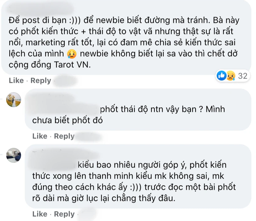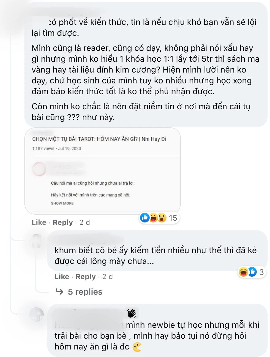 Bài đăng bóc phốt cô gái này thu hút sự quan tâm của nhiều người, trong các hội nhóm về tarot, thuật tâm linh,... nhiều người còn để lại bình luận để phanh phui vụ việc.