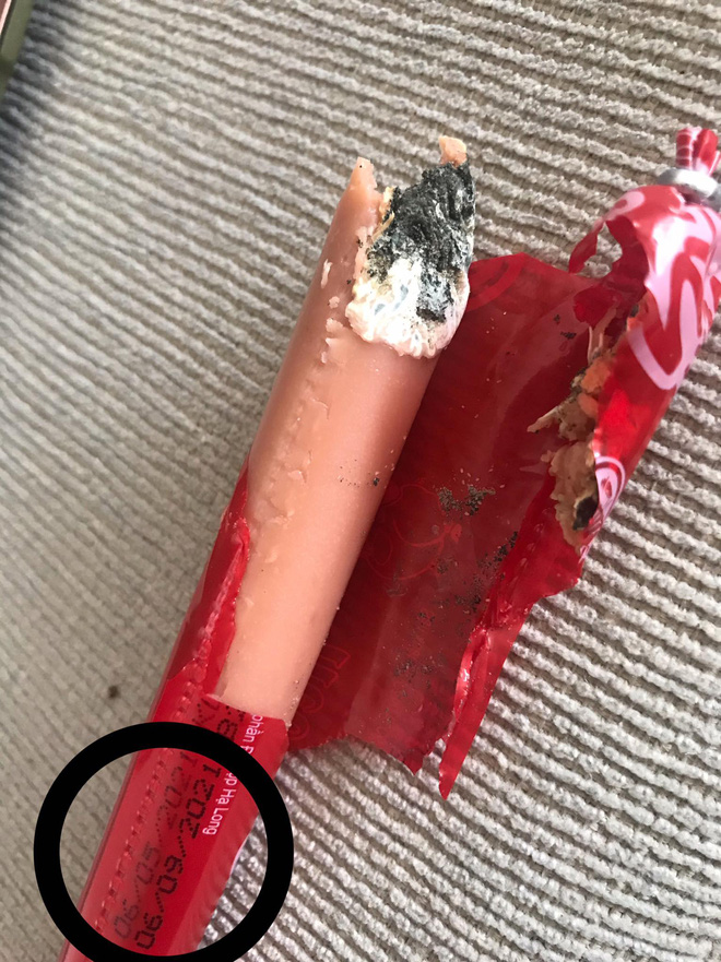 "Trên bao bì ghi rõ ngày sản xuất là 6/5/2021, hạn sử dụng là 6/9/2021. Tức là còn đến gần 2 tháng nữa nhưng không hiểu vì đâu mà gói xúc xích được đóng gói cẩn thận như vậy đã ôi thiu, đang trong tình trạng phân hủy? Liệu dòng chữ hạn sử dụng bên ngoài có đúng không?"