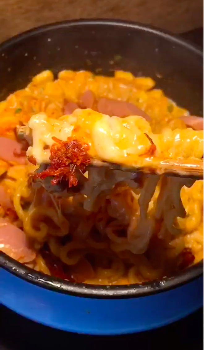 Trên TikTok cũng từng xuất hiện đoạn video khác ghi lại cảnh một cô gái nấu mì cay với… sữa tươi. Thậm chí, cô còn khẳng định món này rất ngon và mình thường xuyên tự làm để ăn tại nhà!