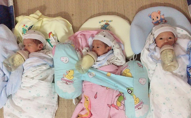 "Em sinh 3 nên tình thương cũng phải san sẻ. Nếu có một con thì mẹ sẽ ẵm bồng được nhiều hơn. Nhà em thì đặt các bé nằm suốt. Mà dạo này 3 đứa lớn rồi nên toàn đòi bế. Có khi em ôm 2 tay 2 đứa, đứa kia không làm sao bế được. Nếu được bà bế giúp thì 4 mẹ con ra võng nằm, không thì cũng phải kệ, thằng nào không khóc thì em lại đặt xuống", 9x kể.