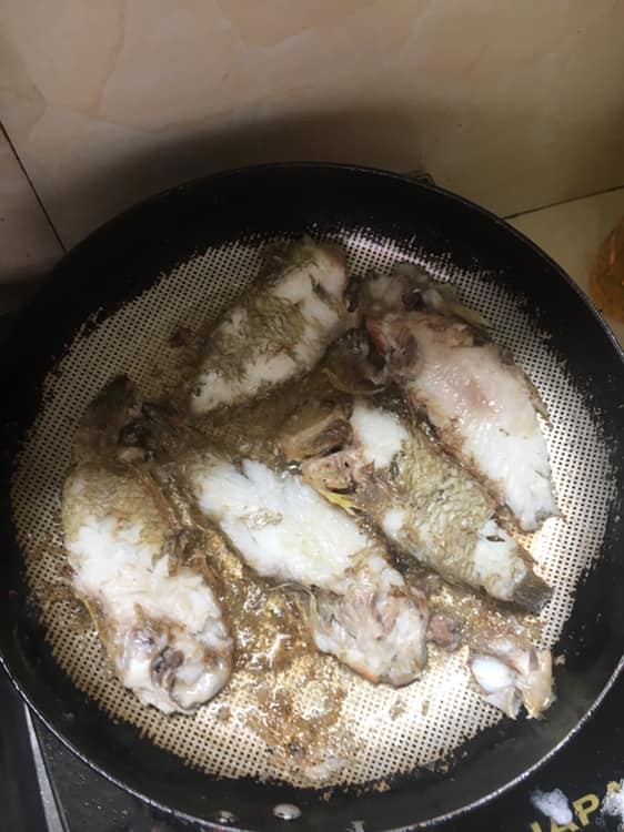 Đính kèm đó, cô gái trẻ này không ngần ngại khoe chảo cá rán dở dang trông… nát be bét. Nguyên phần da cá bị dính vào chảo nên nhìn vừa không ngon, vừa không đẹp mắt.