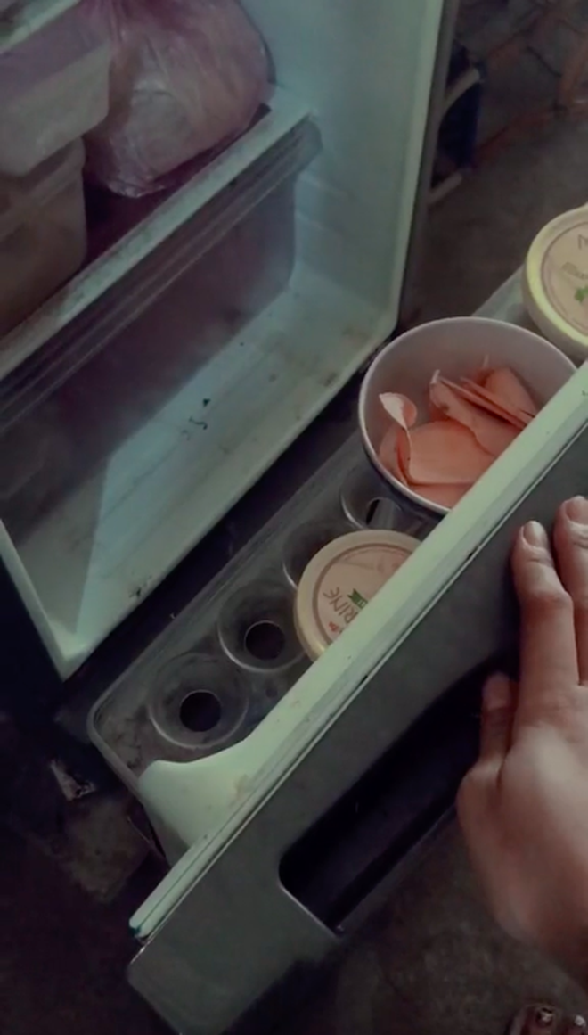 "Mình lỡ tay đóng cửa tủ lạnh hơi mạnh, giờ nó rớt ra luôn. Rồi, tới công chuyện với mẹ mình luôn, trời ơi là trời. Dịch này 3 ngày mới đi chợ 1 lần, rồi đồ ăn giờ để ở đâu?" - cô gái than thở.