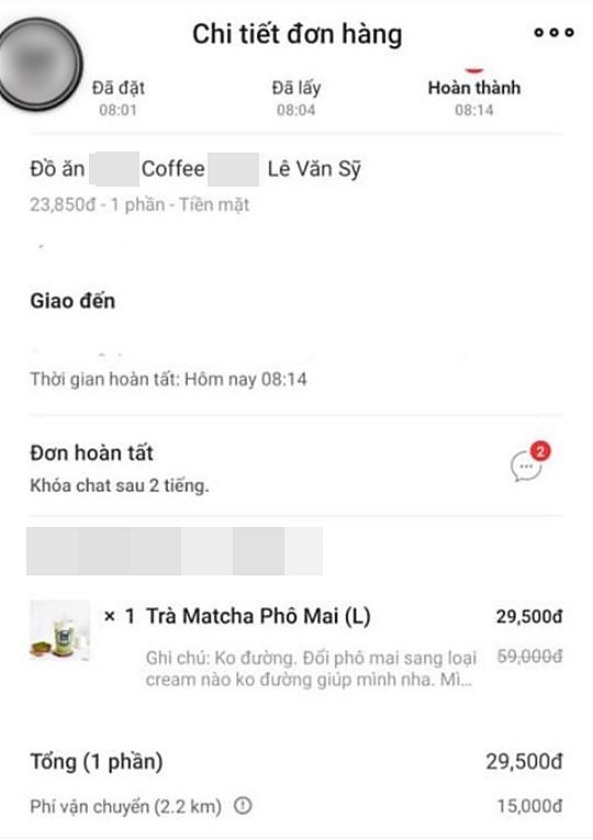 Theo đó, cô gái mua cốc trà matcha phomai qua ứng dụng đặt ship với giá khuyến mãi 29.500 đồng, ghi chú khá rõ ràng rằng: "Không đường, đổi phô mai sang loại cream không đường". Tuy nhiên, khi nhận được nước thì ngay ngụm đầu tiên đã cảm thấy không hài lòng về độ ngọt và gọi cho cửa hàng yêu cầu đổi ly khác.