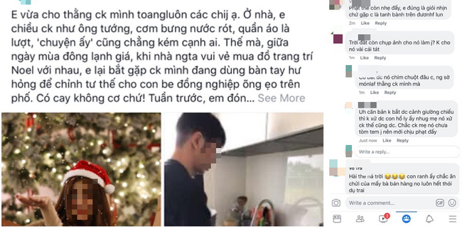 "Em vừa cho chồng mình 'toang' luôn các chị ạ. Ở nhà, em chiều chồng như ông tướng, cơm bưng nước rót, quần áo là lượt, 'chuyện ấy' cũng chẳng kém cạnh ai. Thế mà, giữa ngày mùa đông lạnh giá, khi nhà người ta vui vẻ mua đồ trang trí Noel với nhau, em lại bắt gặp chồng mình đang dùng bàn tay hư hỏng để chỉnh tư thế con bé đồng nghiệp õng ẹo trên phố. Có cay không cơ chứ!