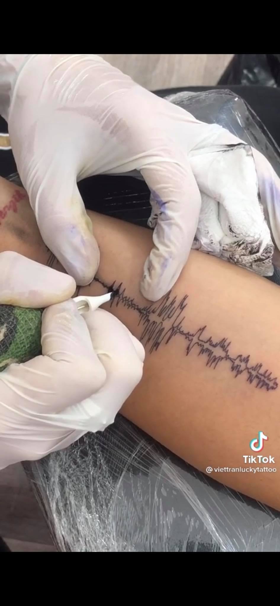 Và theo chia sẻ của chủ clip cũng là người thực hiện hình xăm thì đó là giọng người chồng đã mất của chị khách hàng. Chị ấy muốn lưu giữ hình xăm này trên tay để lúc nào cũng có thể nghe giọng anh và cảm nhận được anh bên mình.