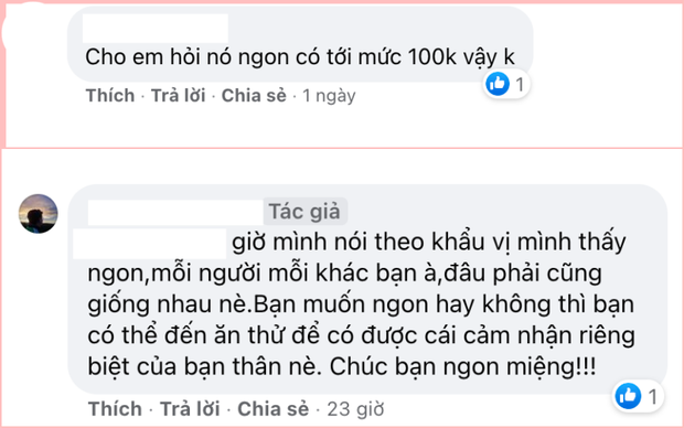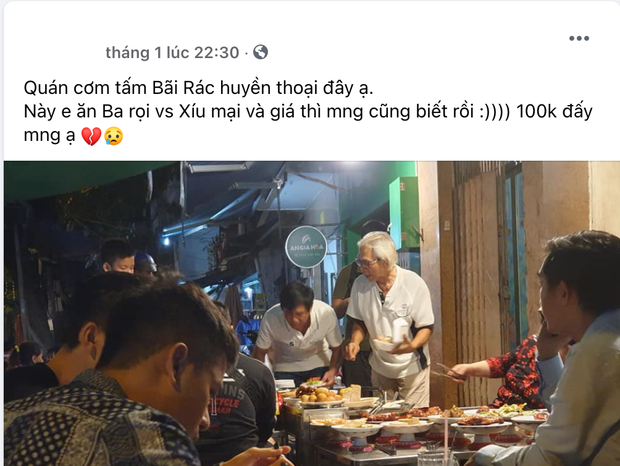 Theo đó, vị thực khách này đã gọi một đĩa cơm tấm ba rọi nướng và món xíu mại ăn kèm. Tổng chi phí hết 100k và cách người này để lại biểu tượng cảm xúc tạo cho người đọc có cảm giác là đang không hài lòng lắm về chất lượng của đĩa cơm, chưa tương xứng với giá tiền. Nhiều cư dân mạng vì tò mò từng đến ăn thử cũng để lại bình luận "chia buồn" với chủ topic.