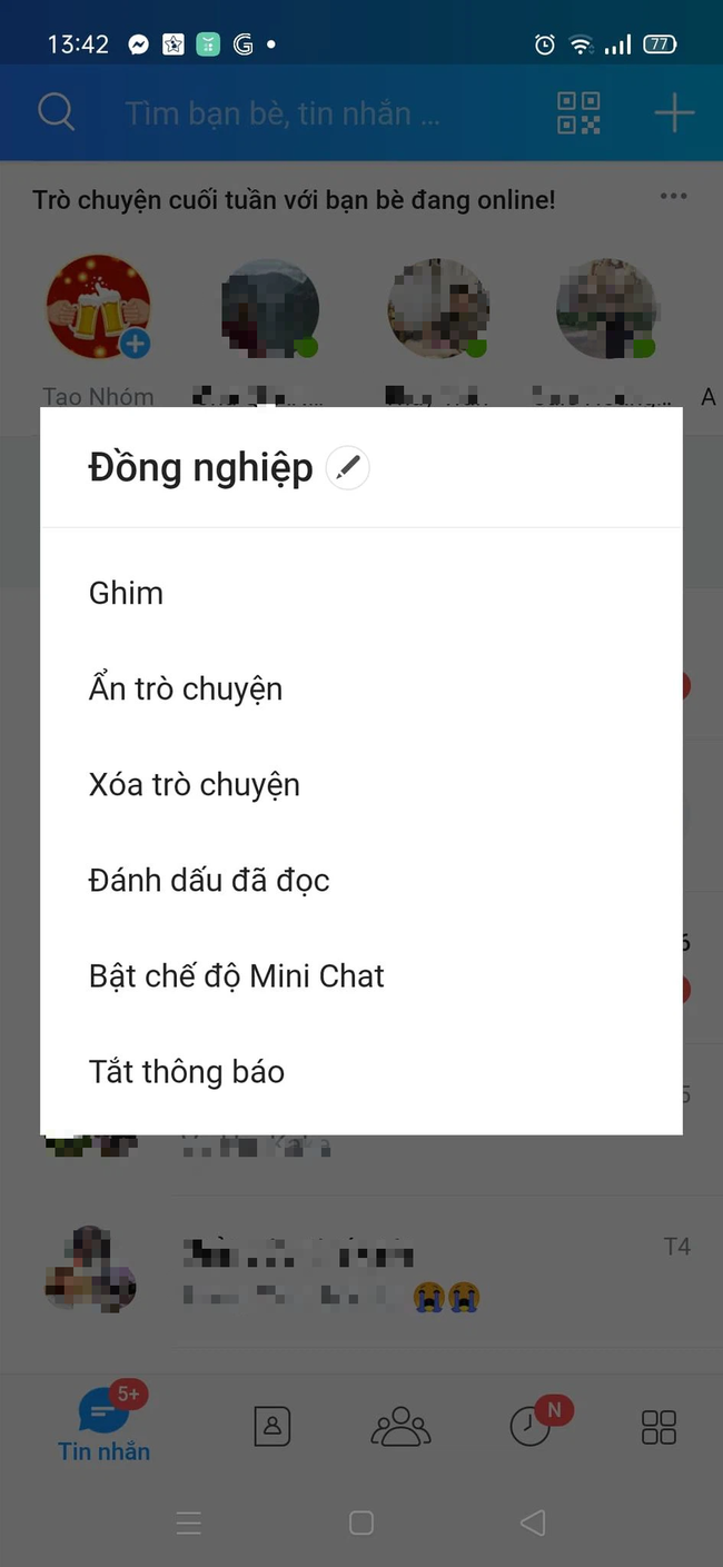 Khi chúng ta muốn ẩn tin nhắn của một người, ví dụ dưới đây là ẩn tin nhắn của người mà bạn lưu tên là "Đồng nghiệp".
