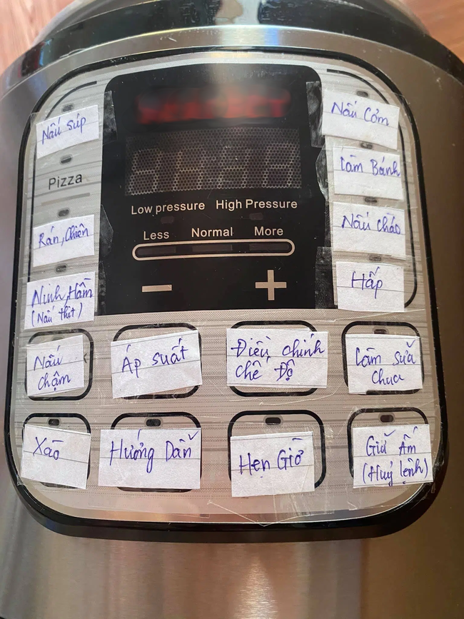 Không ít thành viên mạng trầm trồ khi nhìn thấy chiếc nồi "vạn năng" này, quả thực xịn xò quá đi ấy chứ. Thế nhưng, đống giấy ghi chú từng chức năng bằng tiếng Việt trên các nút đã được chính chủ nhân chiếc nồi khoe lý do rằng để người thân gia đình đọc cho biết cách sử dụng! Có vẻ như đây là chiếc nồi nhập ngoại, dùng ngôn ngữ nước ngoài nên ai không biết tiếng sẽ chẳng hiểu đống nút chằng chịt kia dùng để làm gì. Hiện đại mấy thì hiện, chẳng biết dùng thì cũng xếp xó thôi!