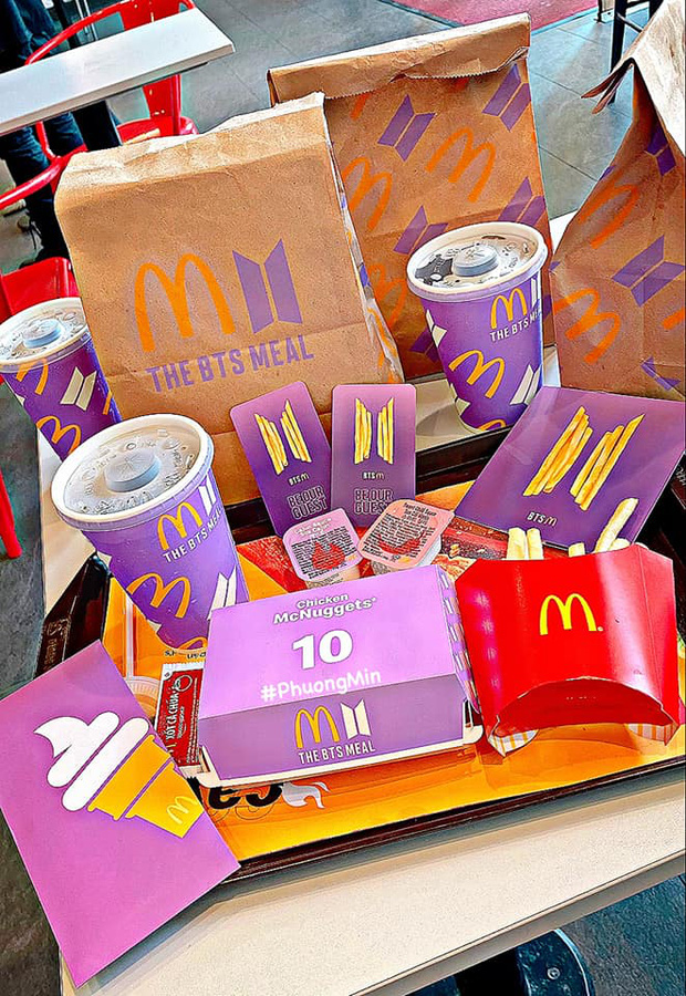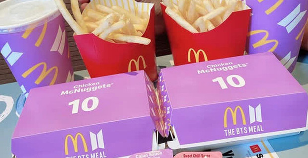 Mới đây, thương hiệu đồ ăn nhanh McDonald's đã bắt tay với nhóm nhạc Hàn Quốc BTS để cho ra mắt menu gà rán mới. Theo đó, những người mua thực đơn này sẽ được tặng những món đồ có giới hạn như chiếc cốc phiên bản giới hạn McDonald's x BTS.