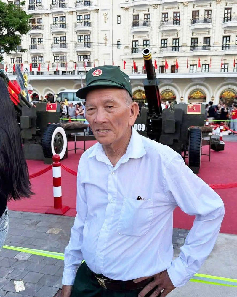 Đó là cụ Trần Văn Thanh (76 tuổi, sống tại TP Vinh, tỉnh Nghệ An). Xuất phát từ quê nhà ở Nghệ An vào sáng 17/4, cụ đã chạy xe máy vượt 1.300km vào TPHCM xem diễu binh.