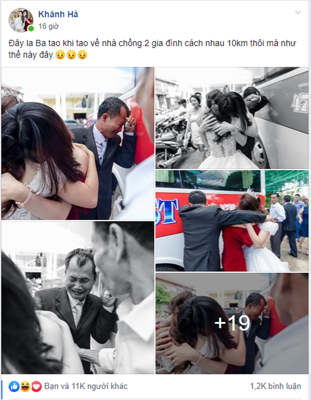 Cô dâu trong loạt ảnh gây sốt mạng xã hội cho biết, cô hiện đang sống tại Buôn Hồ, Đăk Lăk. Dù lấy chồng cùng huyện, chỉ cách nhà chưa đầy 10 cây số nhưng vì thương, vì lo lắng cho con mà cha mới khóc nhiều như thế, mới bịn rịn mãi chẳng chịu rời.