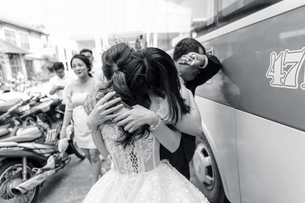Thấy bố khóc, cả nhà khóc theo. Bịn rịn mãi mình mới lên được xe đó", cô dâu chia sẻ.