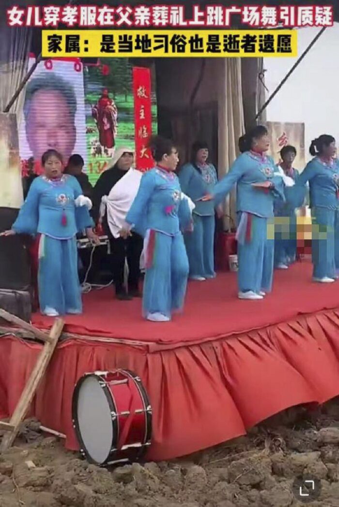 Theo SCMP, anh Xu, con trai của người phụ nữ này cho hay, mẹ mình đã mời một đoàn múa về biểu diễn trong đám ma của ông ngoại, bởi đây là phong tục của làng. Anh Xu giải thích, nếu một người qua đời khi chưa đến 70 tuổi thì sẽ tổ chức đám tang trong sự đau buồn thương xót. Nhưng người quá cố đã trên 70 tuổi thì đám tang sẽ biến thành dịp vui.