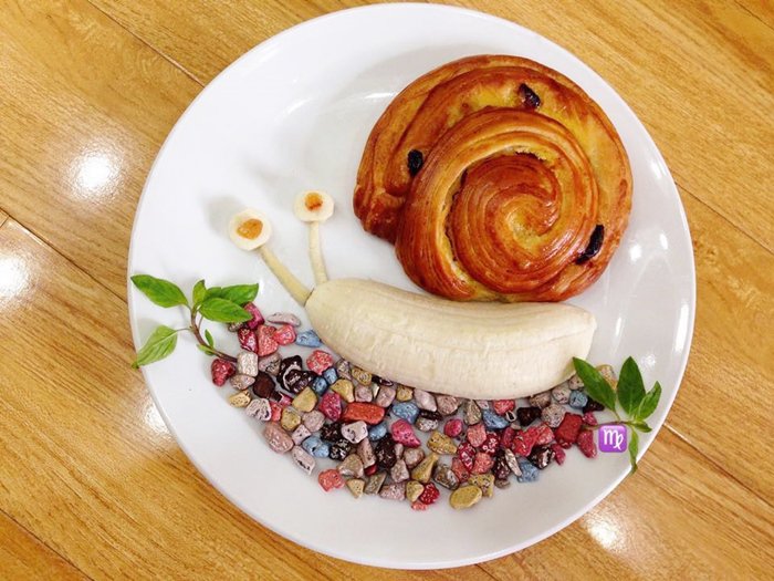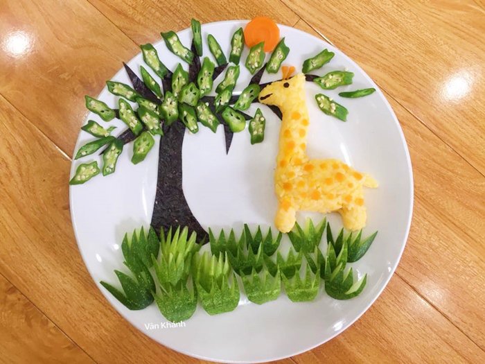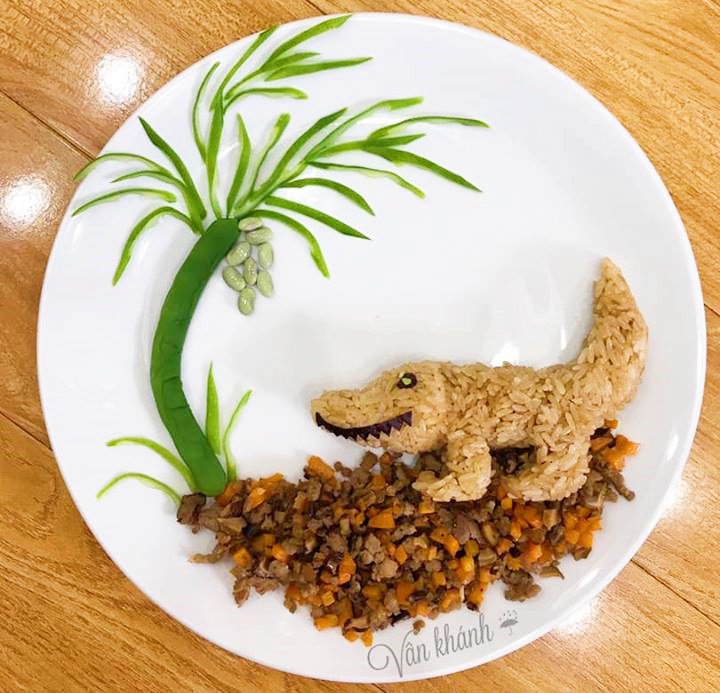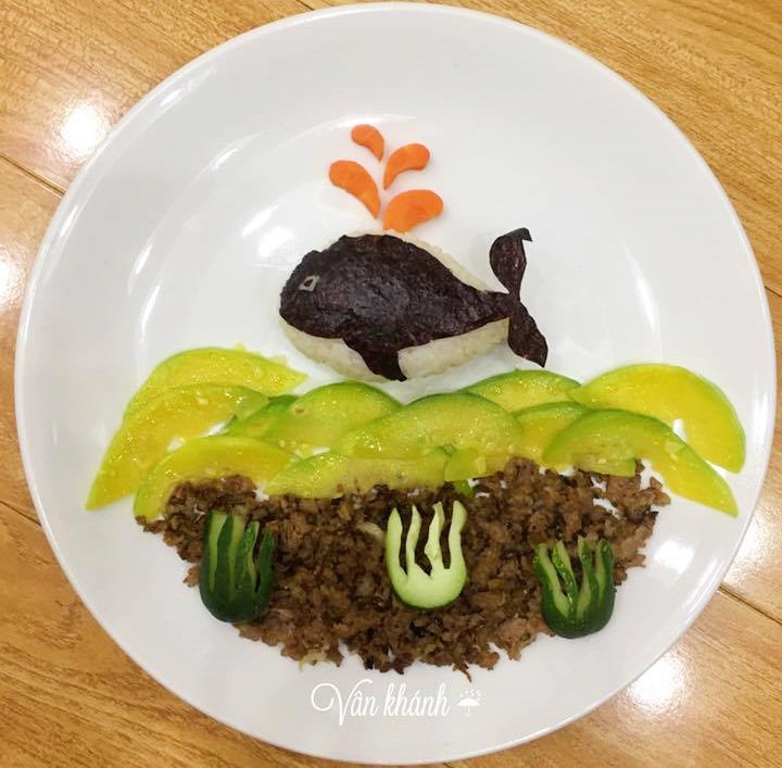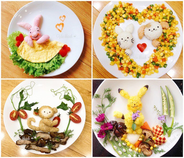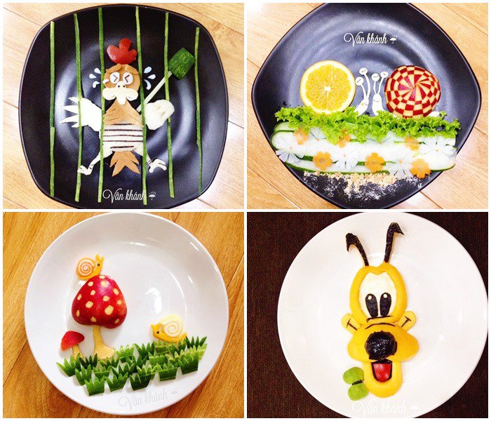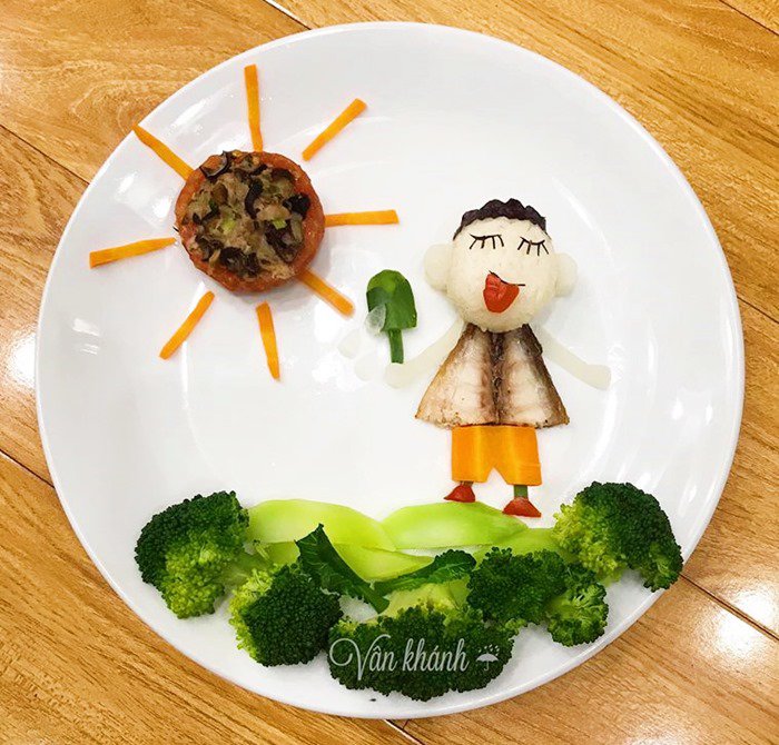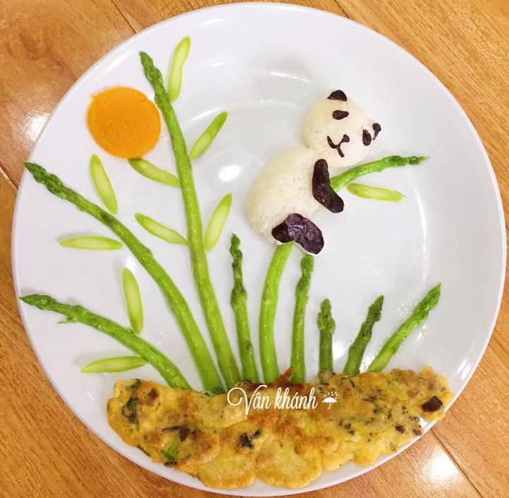 Không chỉ thế, cách đây 2 năm, thấy các con hơi lười ăn một chút, chị Vân Anh đã nghĩ ngay đến việc tạo ra điều gì đó đặc biệt cho từng bữa cơm để các thu hút sự chú ý của lũ trẻ. Cũng trong những năm gần đây, nghệ thuật "xếp food" - xếp thức ăn lên đĩa cho các bé là trào lưu được nhiều ông bố, bà mẹ khắp nơi trên thế giới ưa chuộng. Thế là chị Vân Anh cũng bắt đầu mày mò, tìm hiểu để tập làm mặc dù lúc ấy bé lớn nhà chị cũng đã 6 tuổi rồi.