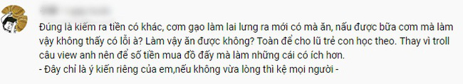 Nhiều ý kiến ném đá nhưng cũng có những bình luận thách Hưng Vlog "troll mẹ" với nước ngọt không màu nhằm đánh lạc hướng mẹ. Có lẽ chính vì những bình luận như thế này khiến Hưng Vlog bỏ ngoài tai mọi lời góp ý và tiếp tục thực hiện những pha trêu mẹ chẳng hề hài hước chút nào.