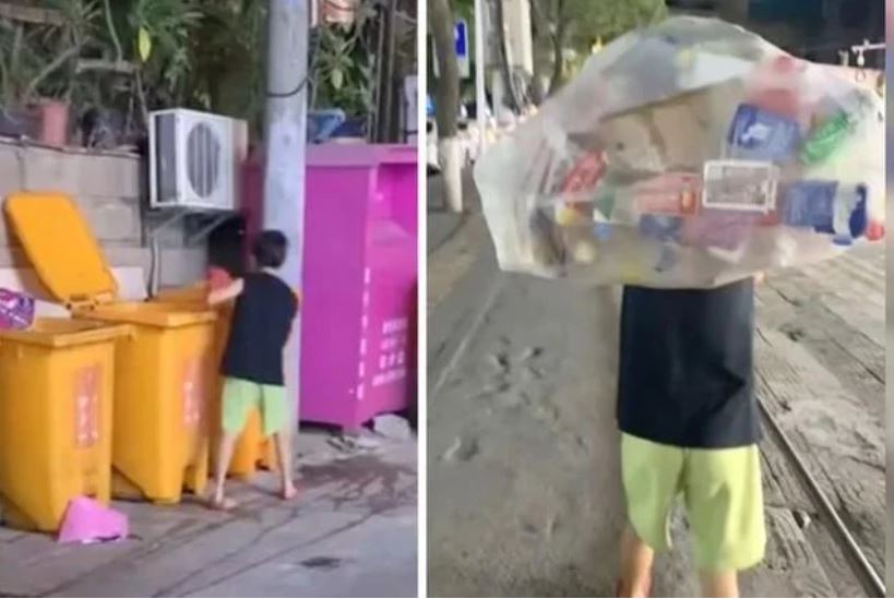 Meng cho biết cô không thể chấp nhận việc ăn cắp và muốn con trai biết rằng kiếm tiền không bao giờ là chuyện dễ dàng. Cô cũng quyết định bắt cậu bé đi nhặt phế liệu để bán lấy tiền trả lại cho bà. Trong hình ảnh được ghi lại, cậu bé đi dép lê, đeo găng tay cao su và đến điểm tập kết rác ở địa phương.