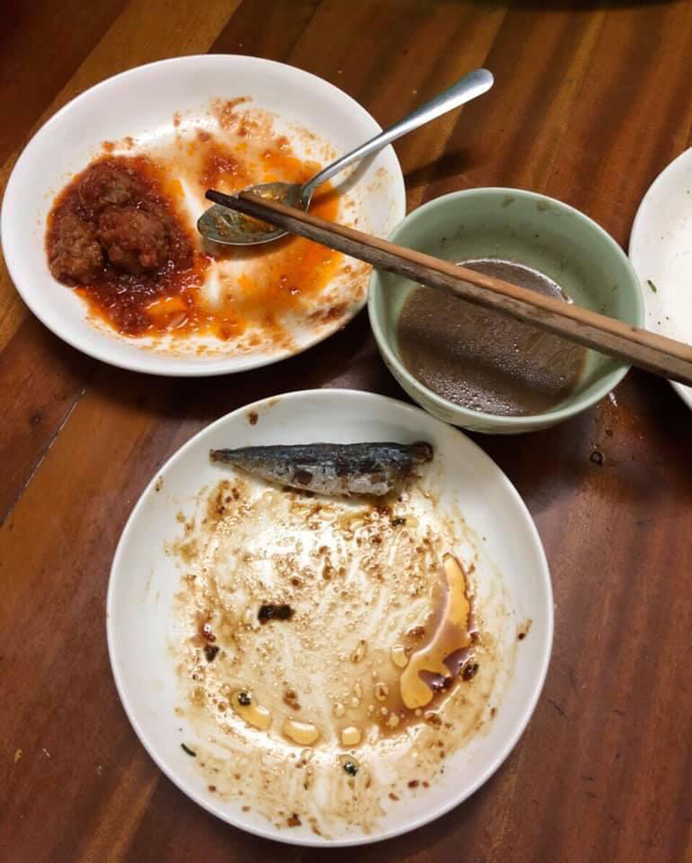 Nhưng nhiều hôm mình nhìn mâm cơm mẹ chồng để phần mà ngao ngán. Mấy cái bát ăn dở chồng lên nhau để ở một góc mâm, thức ăn thừa vẫn còn nguyên bên trong bát. Đũa thìa dùng rồi cũng để đấy.