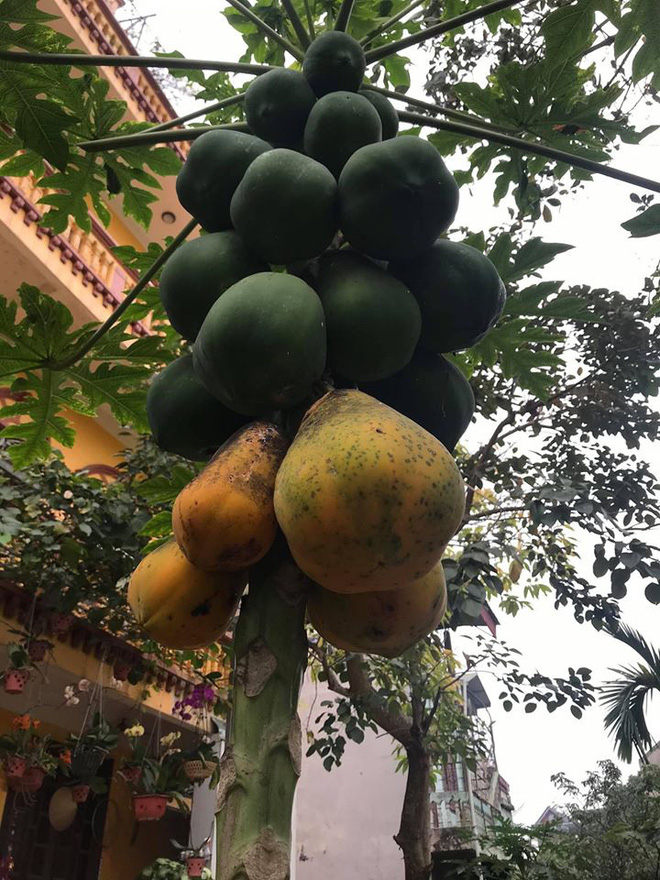 "Cây đu đủ nhà tôi. Ảnh do mẹ chụp. Có ai thấy trường hợp như thế này chưa?", tài khoản này chia sẻ.