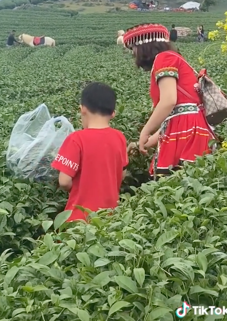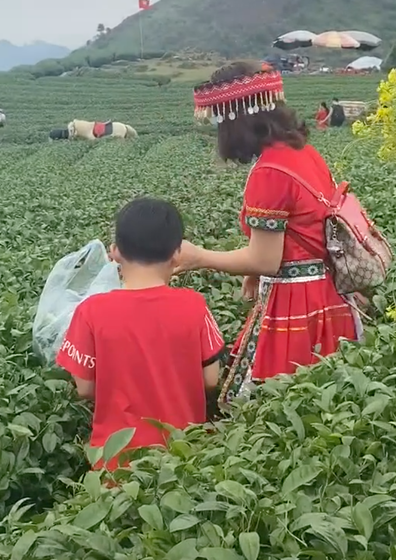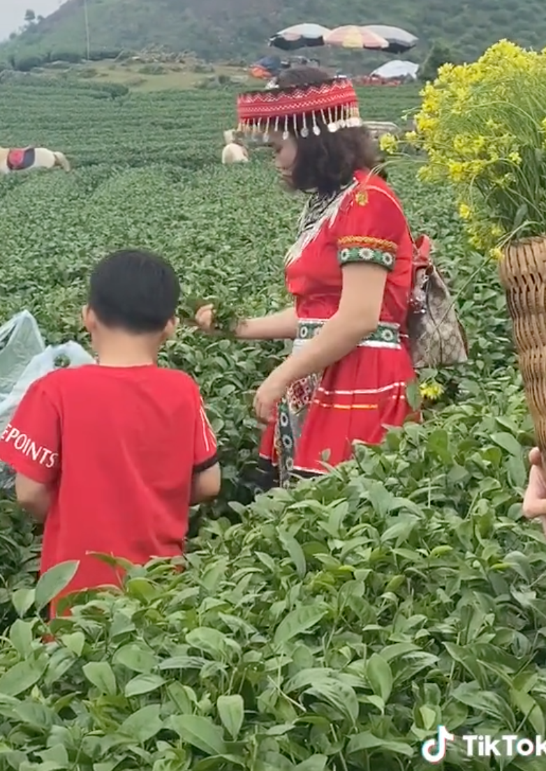 Một đoạn video clip được lan truyền trên mạng xã hội ghi lại cảnh một người phụ nữ trong trang phục dân tộc thẳng tay vặt sạch ngọn chè trên đồi chè bỏ túi ni lông để mang về trước sự chứng kiến của nhiều khách du lịch đang chụp ảnh trên đồi chè này.