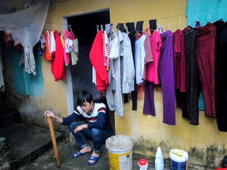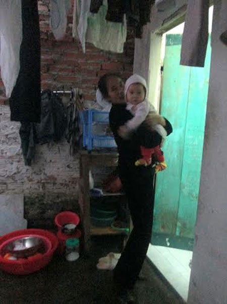 Chị tâm sự, chồng chị đi làm tận khu công nghiệp Bắc Thăng Long – Nội Bài, cách xóm trọ này mấy chục cây số. Chị đành phải cậy mẹ đẻ lên trông con giùm. Những ngày này, trông cảnh bà “trái gió trở giời”, cháu lại khọt khẹt mà thấy xót. “Mẹ tôi đã già yếu, lại phải nom cháu hàng ngày. Bà đã già rồi, chân lại hay đau”, chị Nhung nói.