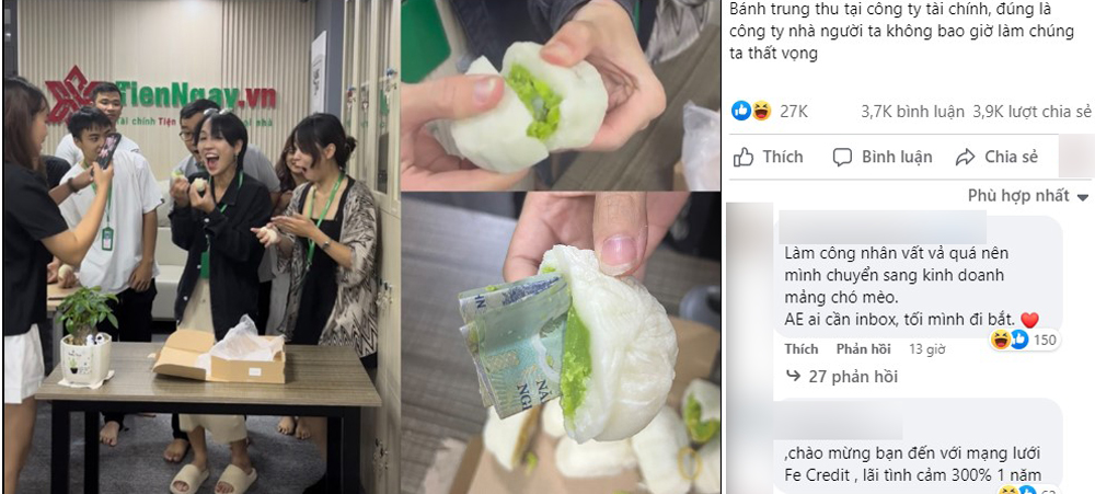 Mạng xã hội mới đây đã rần rần chia sẻ hình ảnh nhóm nhân viên hào hứng cắt bánh trung thu của một công ty tài chính. Đáng chú ý, chiếc bánh trung thu này chứa nhân vô cùng đặc biệt. Không phải là các loại nhân truyền thống như thập cẩm, đậu xanh, khoai môn hay trà xanh mà đó chính là “nhân tiền”.