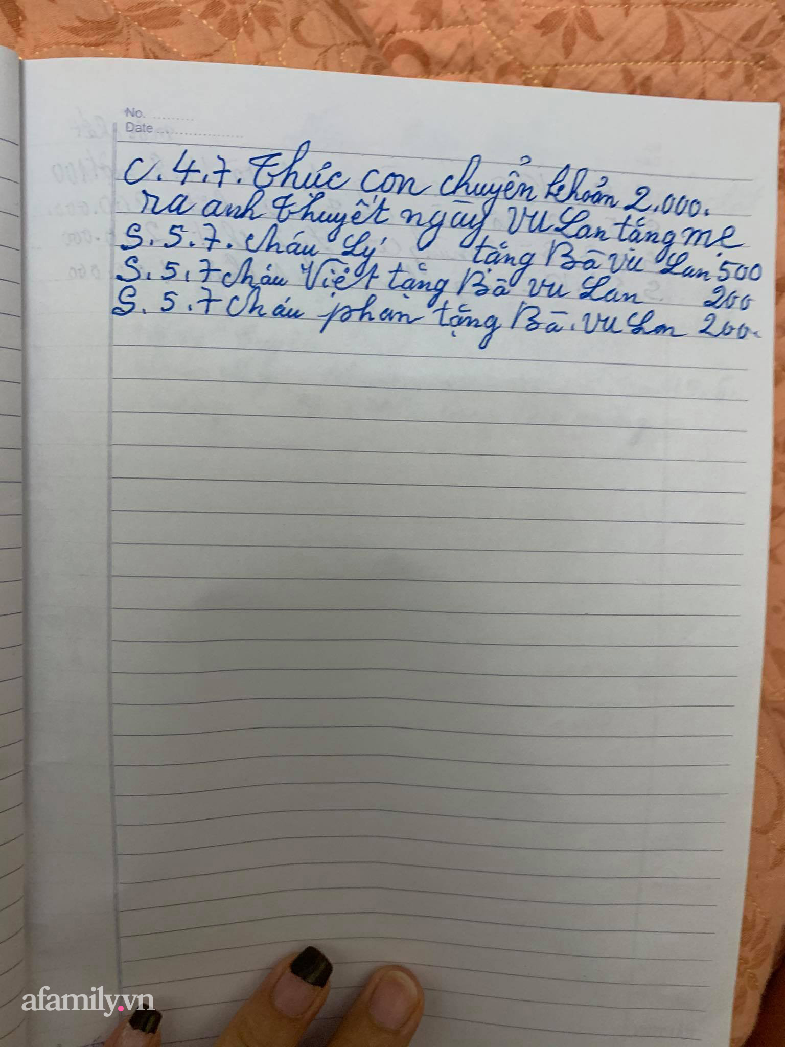 Không những ghi chép cẩn thận, cụ bà còn thể hiện tình yêu thương con cháu khi không quên quà cho các cháu, các chắt vào ngày Tết Thiếu nhi và Trung thu.