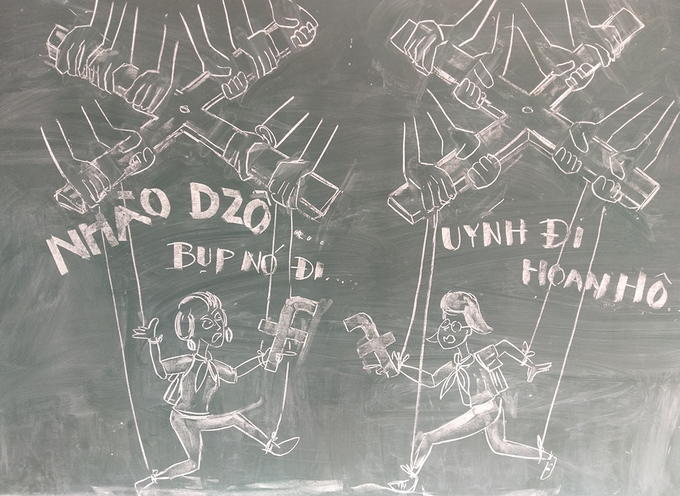 Sau loạt tranh về danh lam thắng cảnh, mới đây thầy Hùng tiếp tục khiến người dùng mạng trầm trồ với nhiều bức tranh biếm họa, cổ động trong các giờ học thực hành.