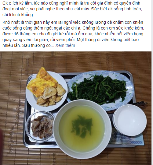 Được 2 tháng đầu tạm ổn. Sang sáng thứ 3, con ốm hơn tuần rồi sang hè điều hòa bật suốt thành ra tiền chi tiêu đội lên 500 nghìn so với hàng tháng. Em nói chồng đưa thêm, anh hằn học lắm. Rút ví đưa tiền cho vợ mà mặt mày cau có bảo: