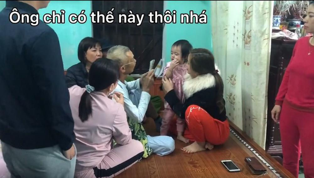 Cụ cầm xấp tiền 500k, trao cho cháu gái bé bỏng nhất đang được mẹ ôm: "Ông chỉ có thế này thôi, tặng cho con" - ông nói.