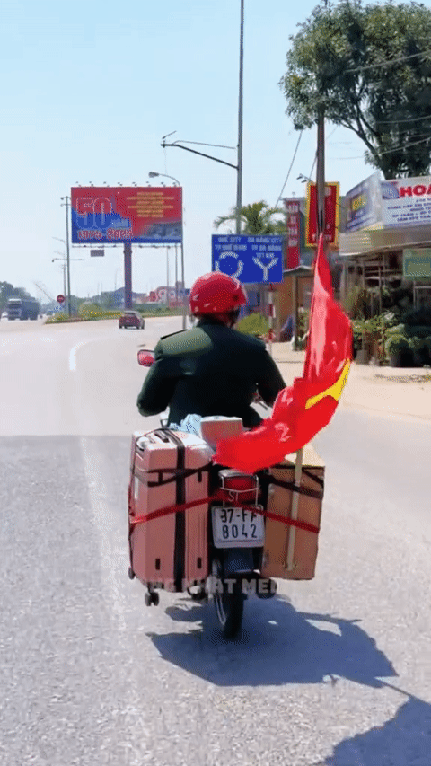 Hình ảnh cụ ông với khuôn mặt đầy nếp nhăn, mặc quân phục, chạy xe máy trên nẻo đường từ miền Trung vào miền Nam, phía sau xe là lá cờ đỏ sao vàng bay phấp phới khiến người xem xúc động và tự hào.