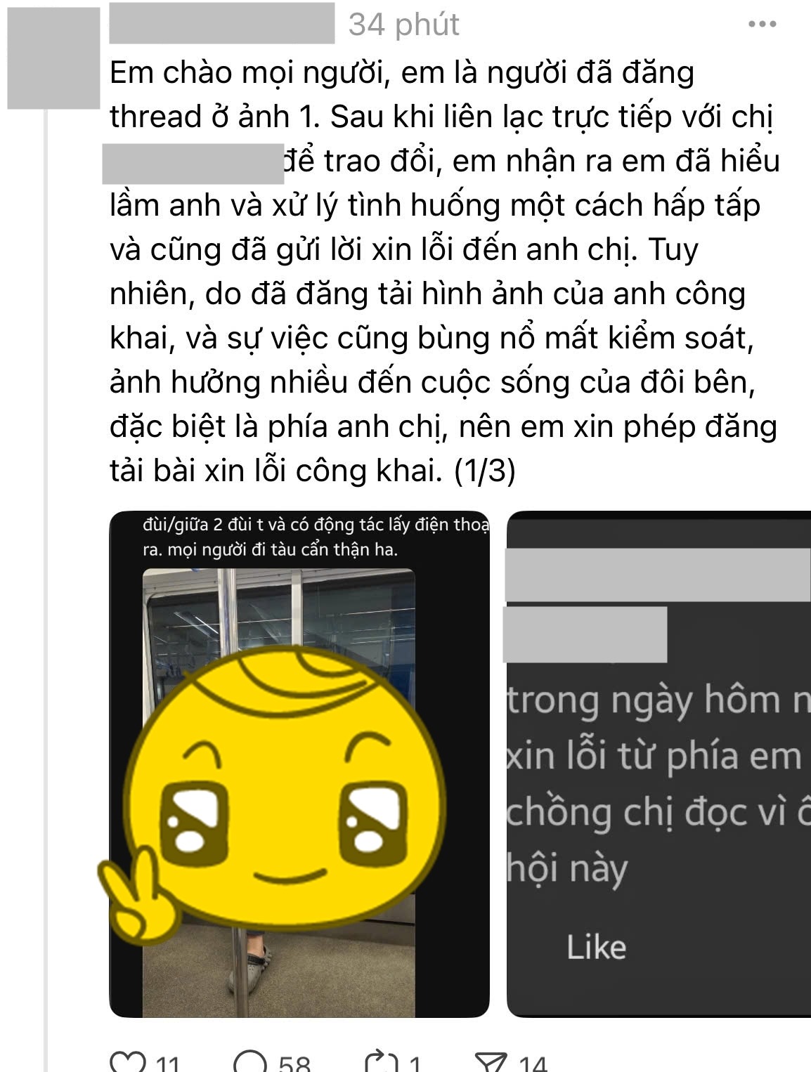 Mọi chuyện bắt đầu khi tài khoản A. đăng đàn tố một người đàn ông nhìn vào đùi mình và có hành vi đáng ngờ trên tàu điện, kèm theo hình ảnh của người này.