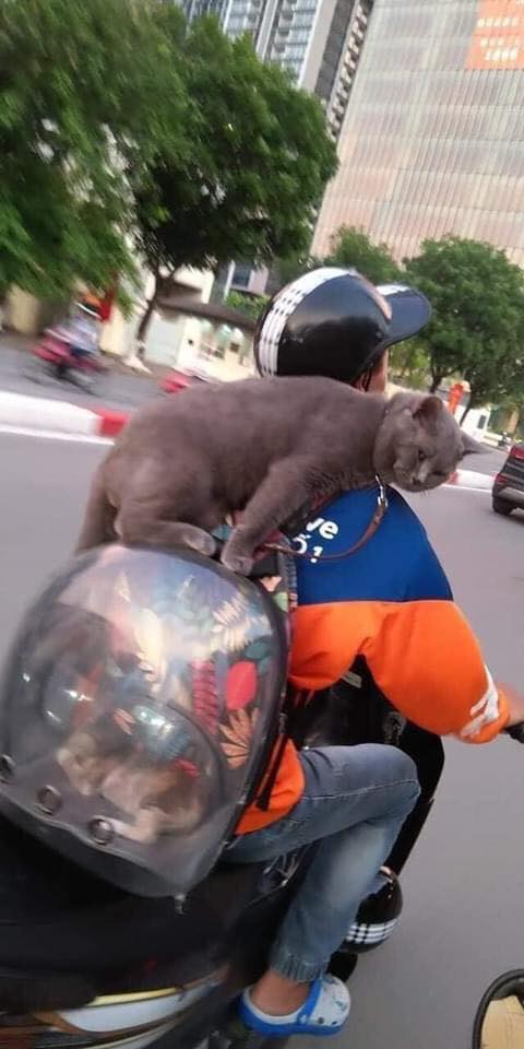 24/06/2020 22:45Cưỡi sau lưng shipper đi qua phố, chú mèo xám bỗng trở thành visual với biểu cảm khó tả