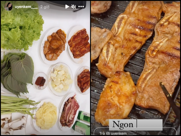 Người yêu của cầu thủ Thành Chung - gái xinh Tố Uyên đã chiêu đãi team qua đường bằng một set nướng tưng bừng. Cô thậm chí còn zoom thật sát miếng thịt đang cháy cạnh làm ai nấy đều không kiềm lòng được.