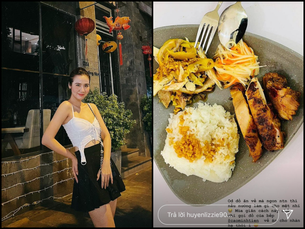 Huyền Lizzie thì tranh thủ order một phần cơm ăn thật nhanh rồi chuẩn bị đồ ăn đồ uống, sẵn sàng cho những ngày giãn cách đỡ phải đi mua, tiếp xúc nhiều người.