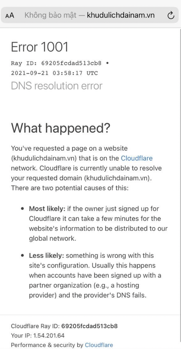 Cụ thể vào hồi 21/9, nhiều netizen đã không khỏi ngỡ ngàng - ngơ ngác khi liên tiếp khu du lịch này bị tấn công trên MXH. Theo đó, yoàn bộ những website lớn nhỏ liên quan đến Đại Nam hiện tại đều đã "bay màu" sạch sẽ trên Google. Nhiều netizen khi truy cập vào đường link "khudulichdainam.vn" đã phát hiện website này đã không còn truy cập được và hiện dòng chữ Error 1001.