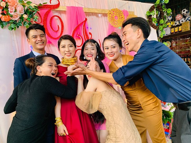“Gia đình cô dâu thuộc diện có điều kiện trong vùng. Tại lễ cưới, cô dâu đã được bố mẹ và họ hàng trao tặng rất nhiều của hồi môn, ước chừng hơn 100 cây vàng gồm kiềng, vòng, dây chuyền và cả vàng miếng,…”, anh Xuyên Võ nói.