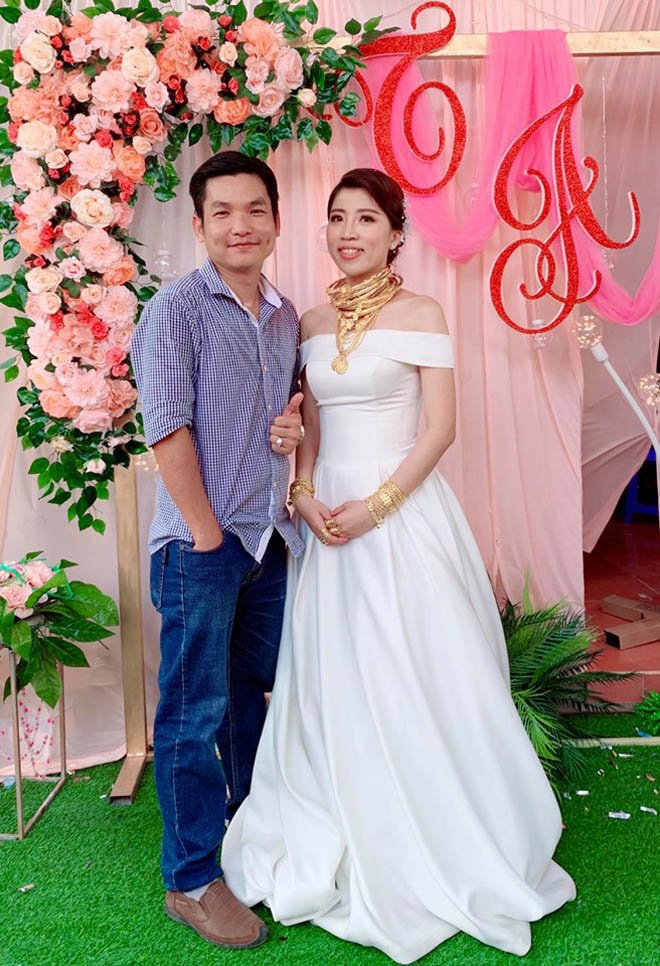 Mới đây, mạng xã hội lan truyền những hình ảnh của một cô dâu trẻ đeo vàng trĩu cổ trong đám cưới gây xôn xao. Theo đó, cô dâu mặc một bộ váy cưới trắng tinh khôi, trang điểm dịu nhẹ rồi cười rạng ngời khi sánh đôi cùng chú rể.