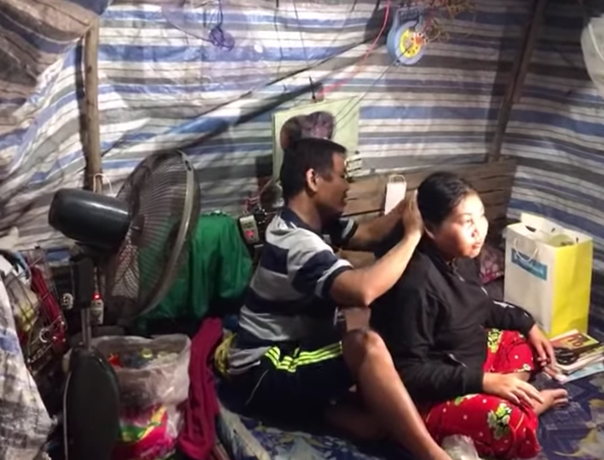 "Hai vợ chồng khờ có tâm lắm, ăn chay, đi chùa, sống ở gầm cầu, sát sông tối nước lên ở dưới thì rút chân lên giường, ở trên mà mưa thì hai vợ chồng lấy đồ che rồi ngủ, có nhiều đêm rắn rết bò trên giường, mẹ của hai em cũng không có nhà ở phải ở trong nhà tình thương nhưng sắp tới cũng phải trả nhà xuống gầm cầu ở luôn vì không có nơi ở. Chính quyền địa phương cũng đã cố gắng giúp đỡ, xét hộ khẩu nhưng vì cả gia đình ở xứ xa lên lập nghiệp, chỗ quê cũ thì người ta cắt hộ khẩu, từ đó không có tờ giấy tùy thân nào", một người xóm kể lại.